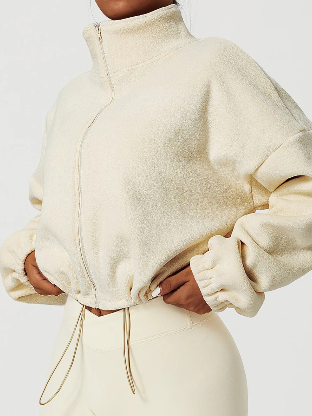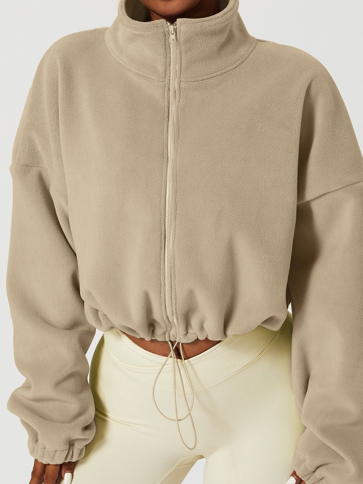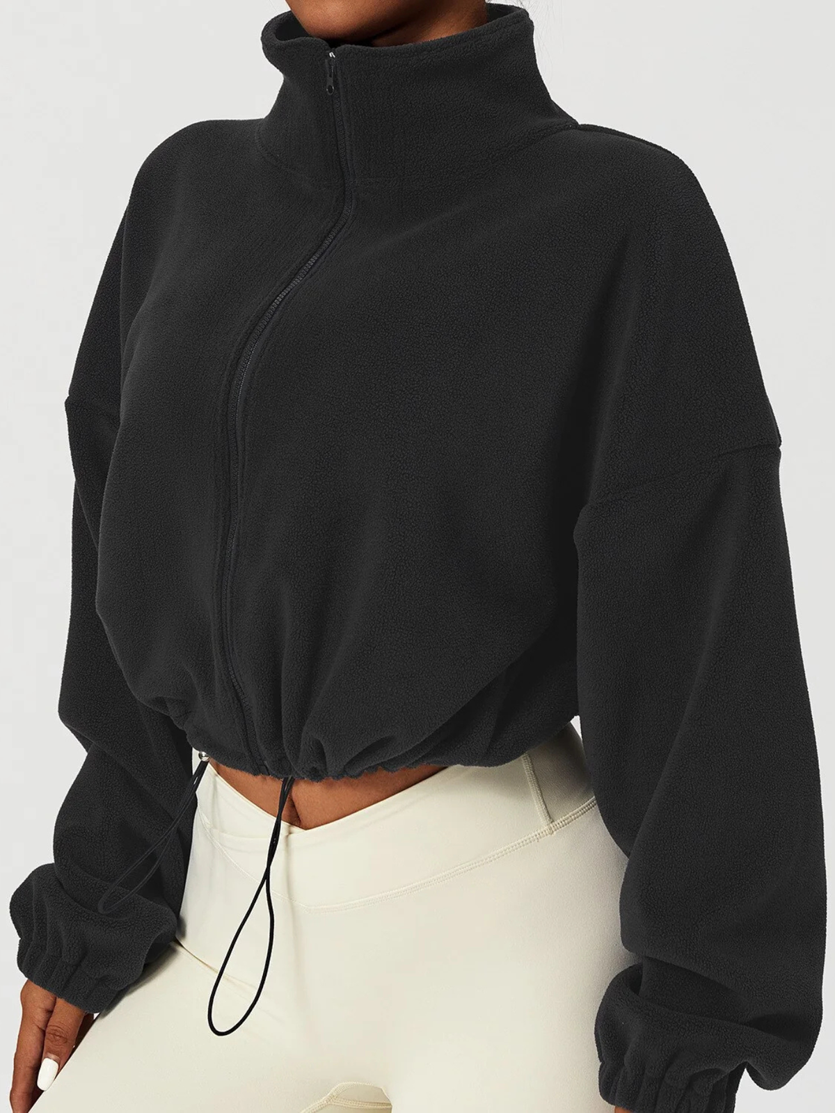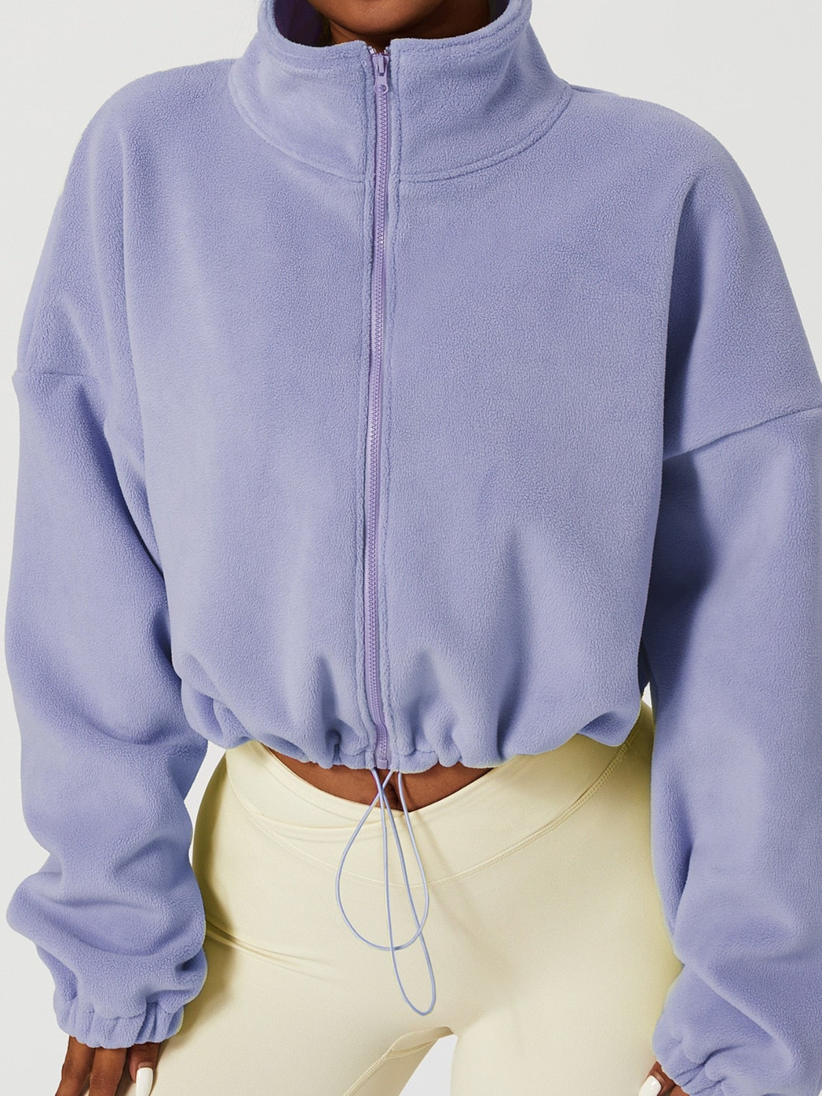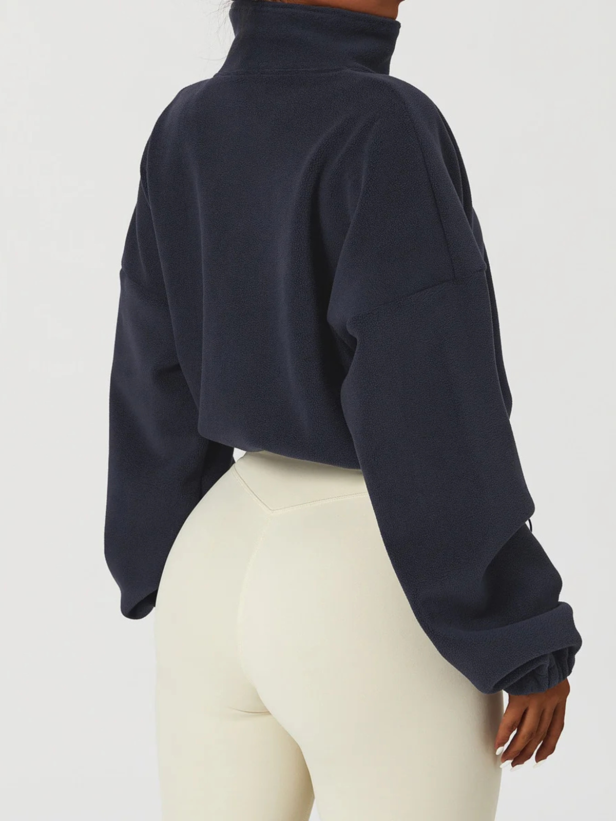 A gola alta envolve o pescoço com suavidade, oferecendo proteção extra contra o vento e temperaturas baixas. O fechamento em zíper garante praticidade no uso e melhor ajuste ao corpo.