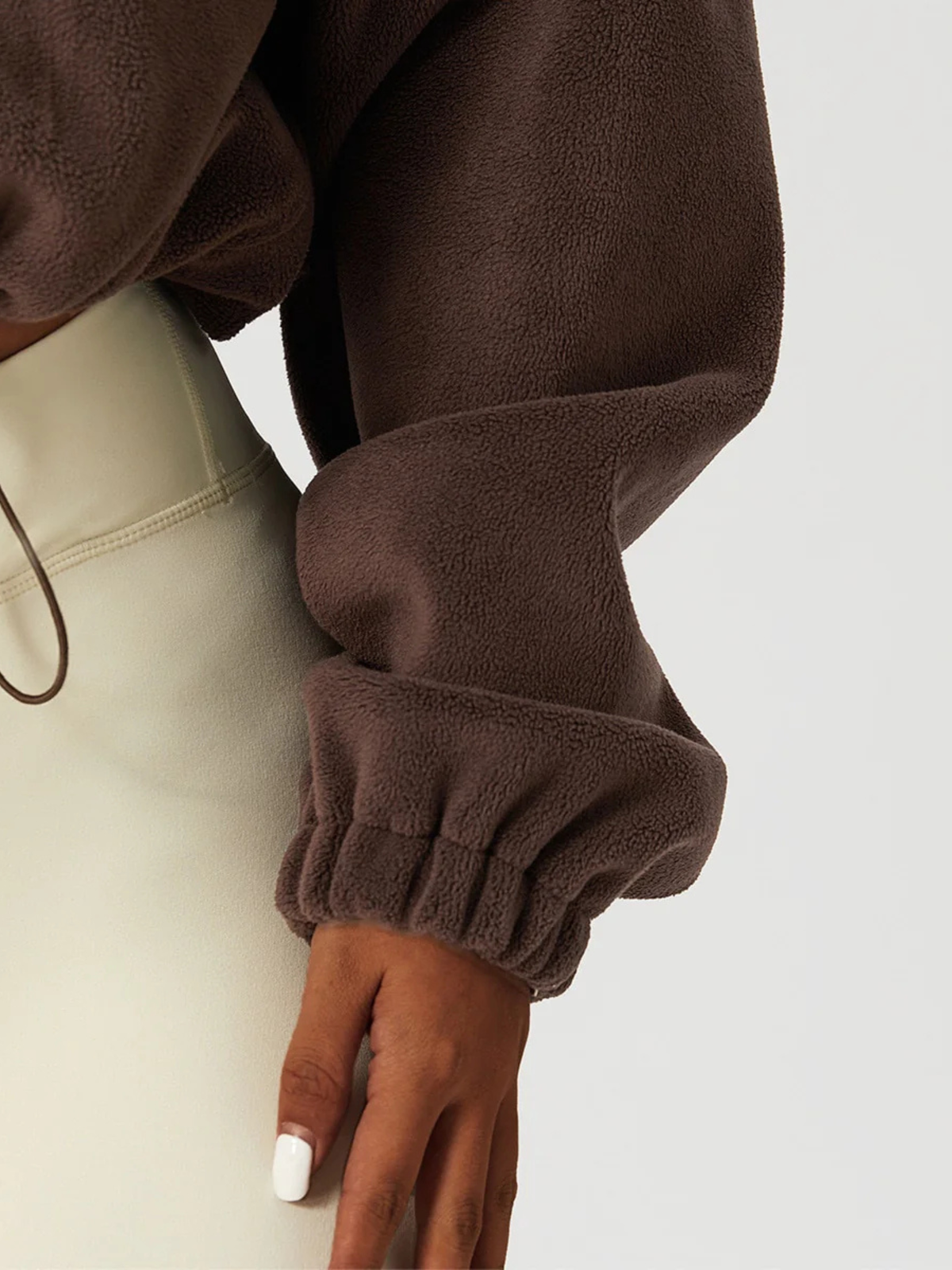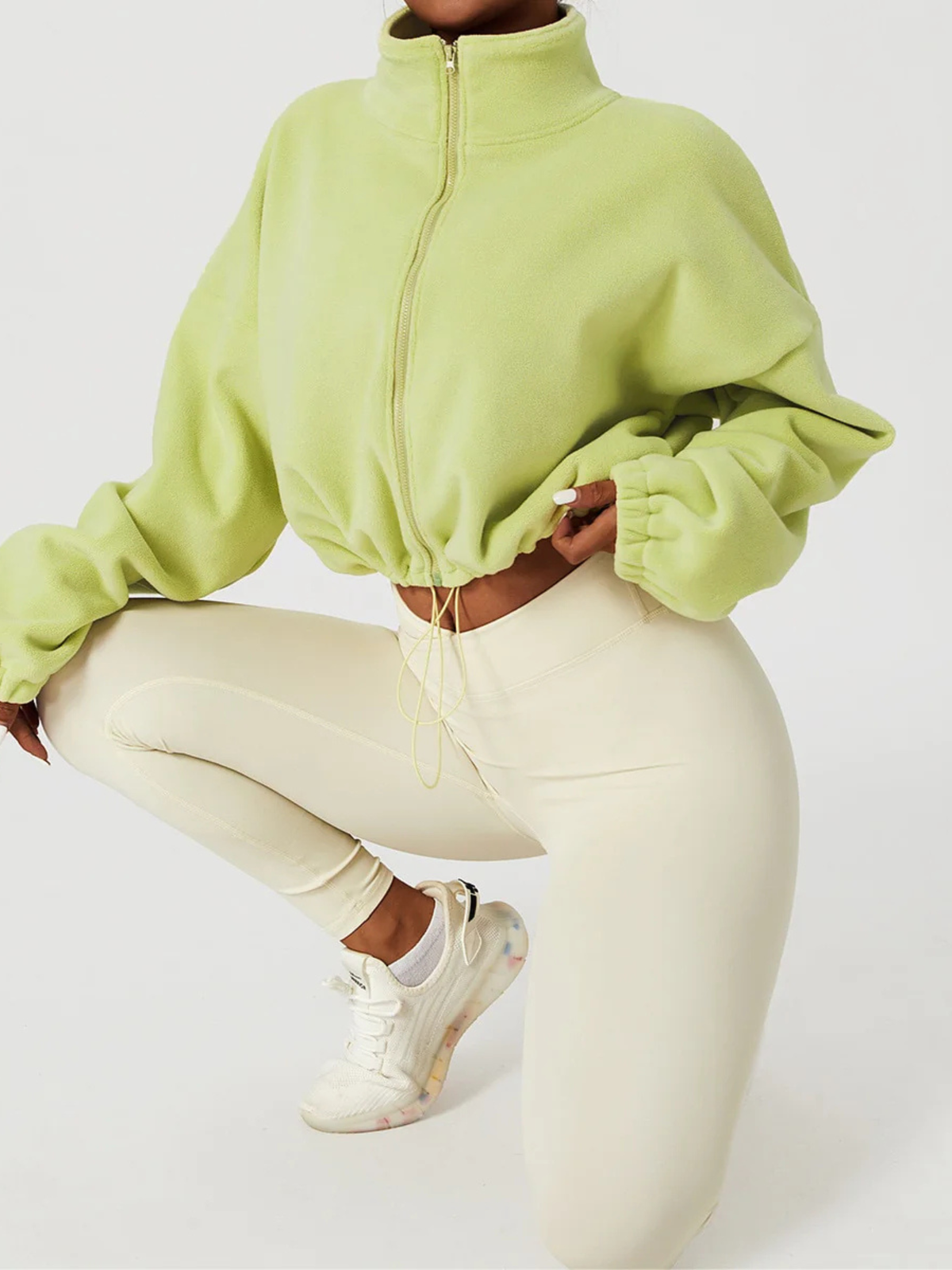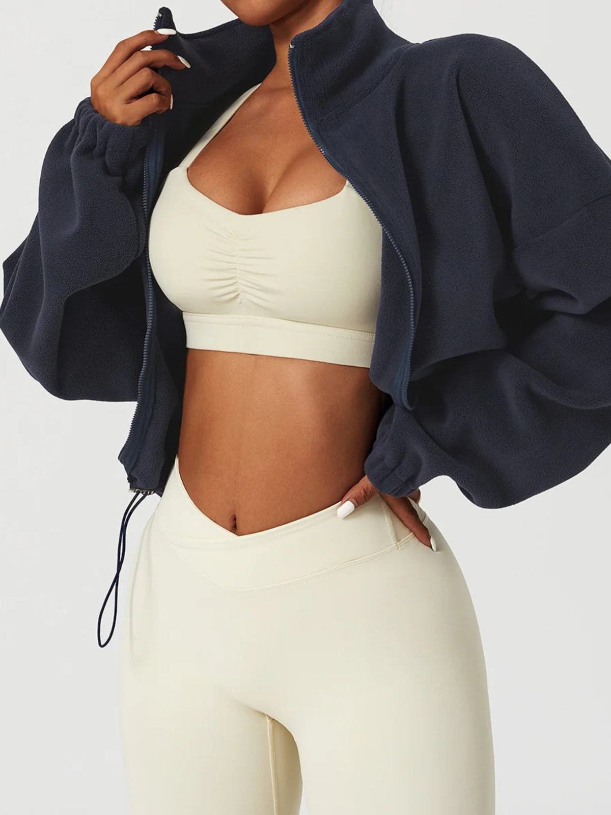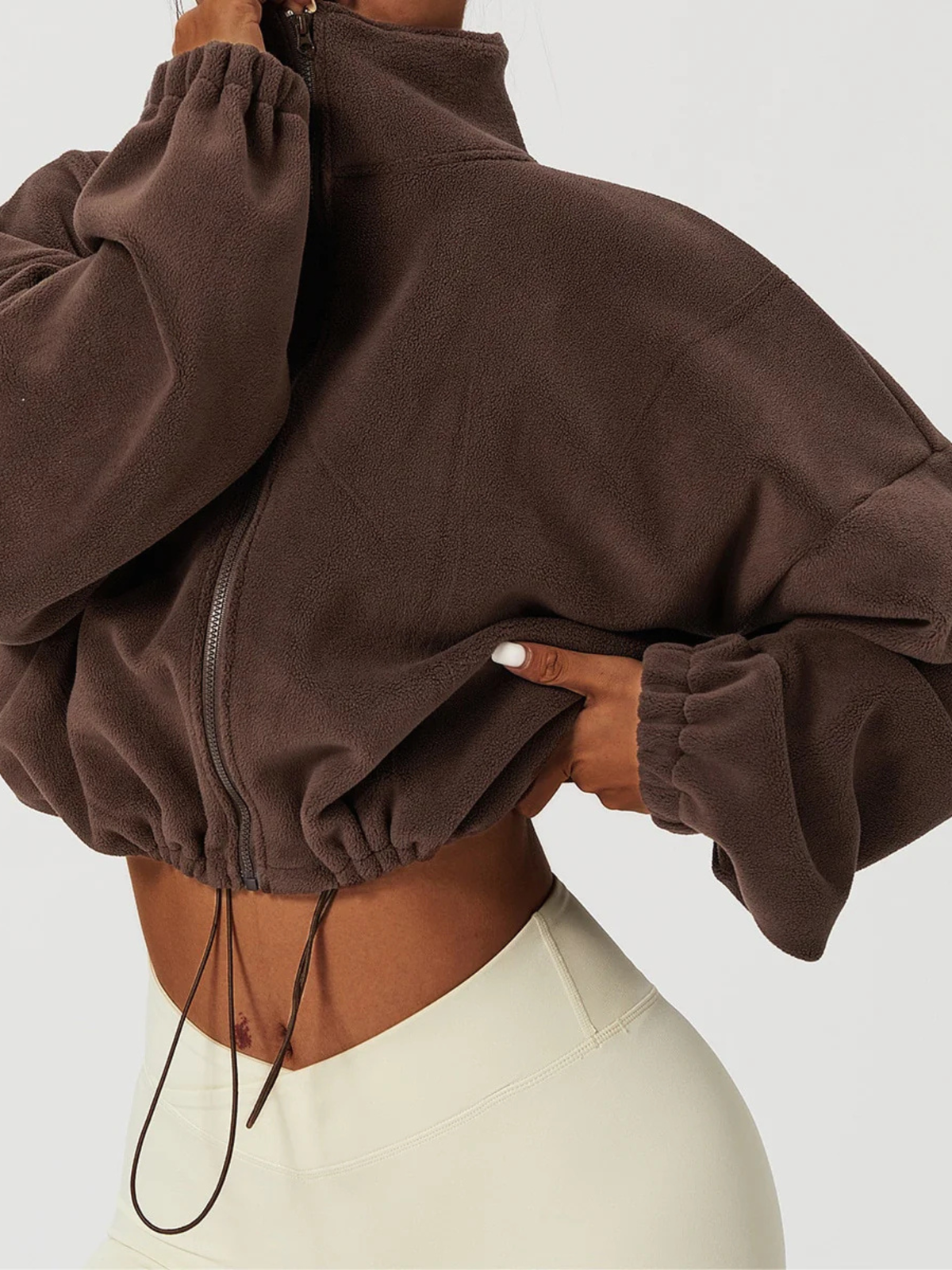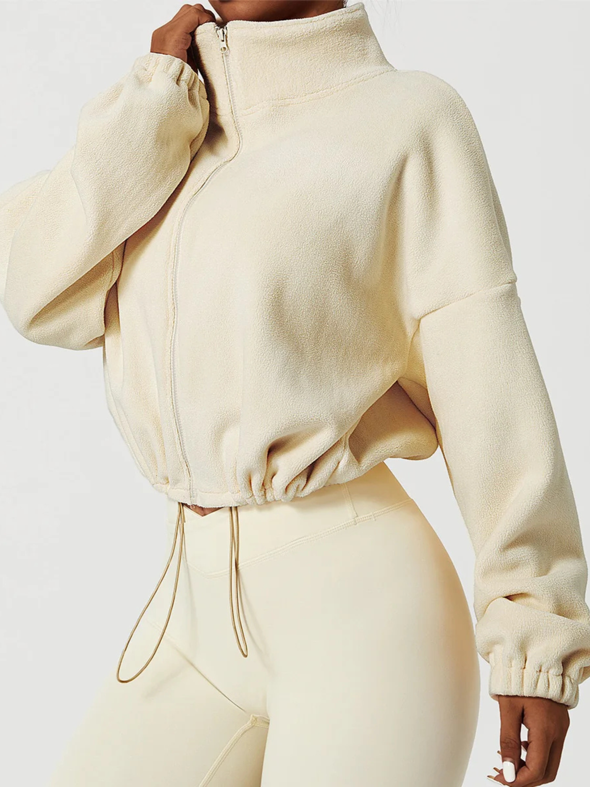 A gola alta envolve o pescoço com suavidade, oferecendo proteção extra contra o vento e temperaturas baixas. O fechamento em zíper garante praticidade no uso e melhor ajuste ao corpo.